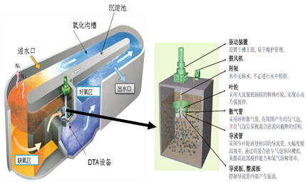 一體式節(jié)能高效氧化溝污水處理裝置是我公司研發(fā)并推廣使用的一款專門用于村鎮(zhèn)生活污水污水處理的新技術(shù)。該技術(shù)處理污水的基本原理是活性污泥法,采用的工藝是奧貝爾氧化溝,其核心設(shè)備是一體化曝氣和水流推進(jìn)設(shè)備,該設(shè)備代替了傳統(tǒng)氧化溝工藝的表面曝氣和水下推進(jìn)設(shè)備,實現(xiàn)了高效的氧傳質(zhì)和水流推進(jìn)目的,使出水水質(zhì)可穩(wěn)定達(dá)標(biāo)。